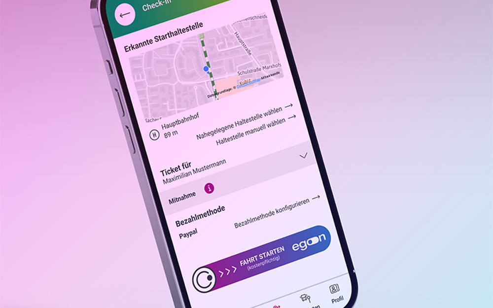 Der Einstieg in die egon Welt ist denkbar einfach: Hast du die App VGN Fahrplan & Tickets installiert und dich dort bei egon angemeldet, möchten wir dir deine Fahrten mit den öffentlichen Verkehrsmitteln so schnell und einfach wie möglich machen. Ein Wisch genügt und du kannst losfahren. Nachdem du am Ziel wieder ausgecheckt hast, berechnen wir für dich den Preis automatisch.