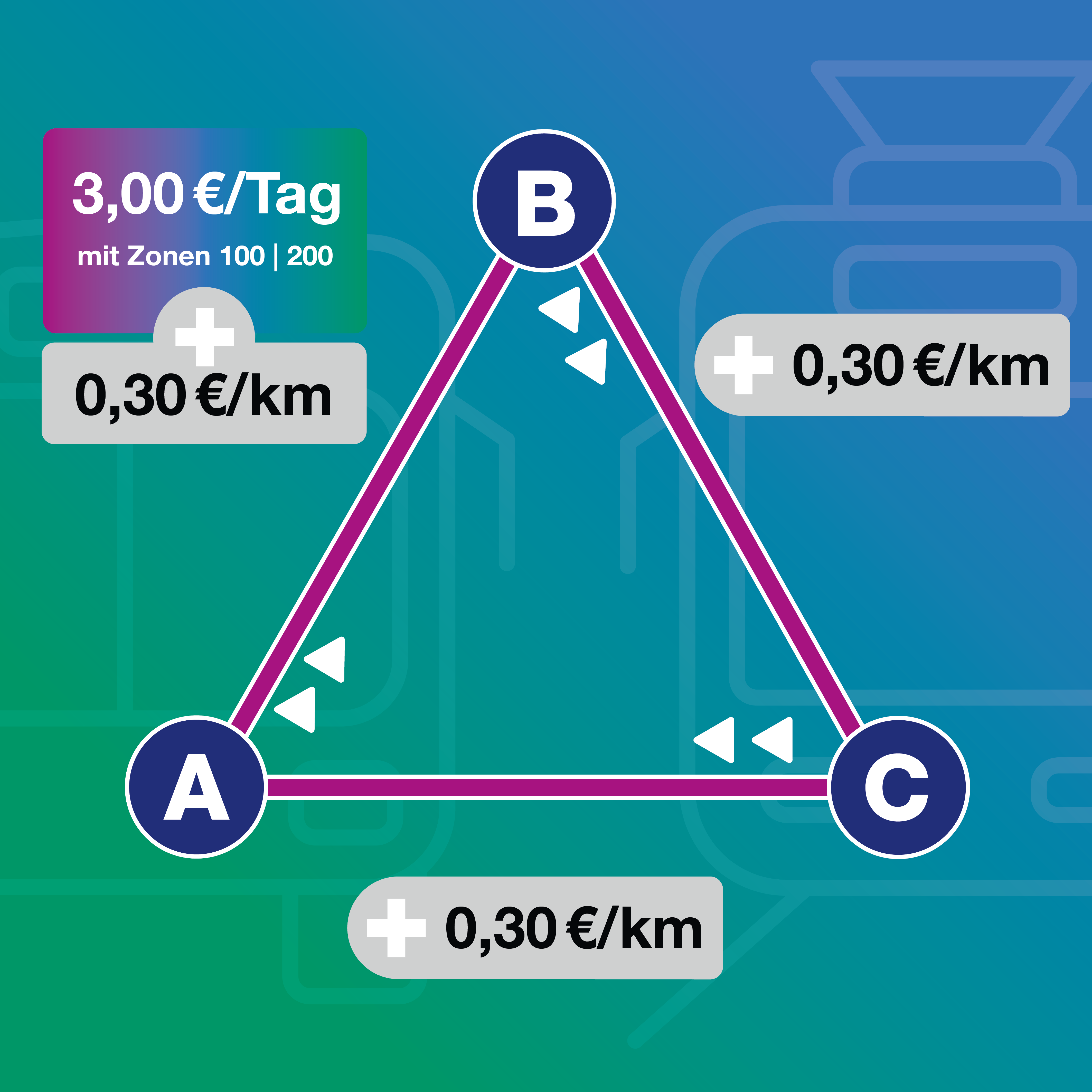 Bei allen weiteren Fahrten am selben Tag fällt für dich kein zusätzlicher Tagesgrundpreis mehr an. Es gibt jedoch Ausnahmen, bei denen dir zwei Mal 1,50 Euro am Tag berechnet werden kann.
