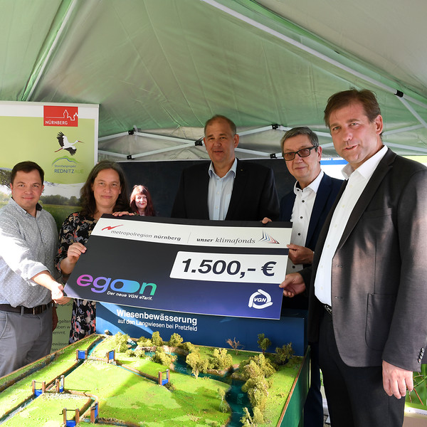 Anlässlich von 1,5 Millionen getätigten Fahrten mit egon spendet der VGN 1.500 Euro für ein regionales Klimaschutz-Projekt.