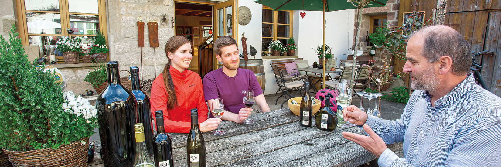 Die Route führt entlang sonniger Weinhänge zu lokalen Winzerstuben und selbstge-brautem Schloss-Bier, Dörrobst-Traditionsbetrieben, Glashütten-Historie und fränkischer Slow-Food-Cuisine.