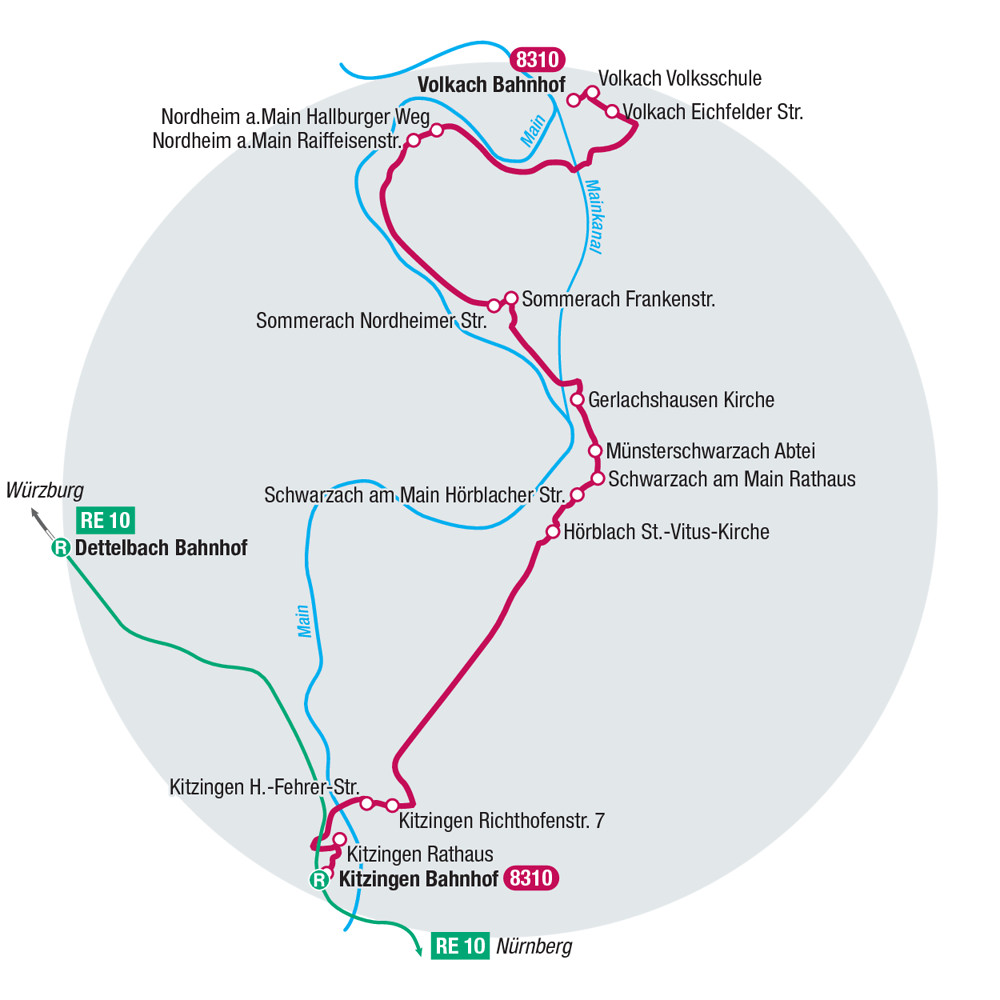 Der Mainschleifen-Express 310 (VGN 8310) fährt von Kitzingen