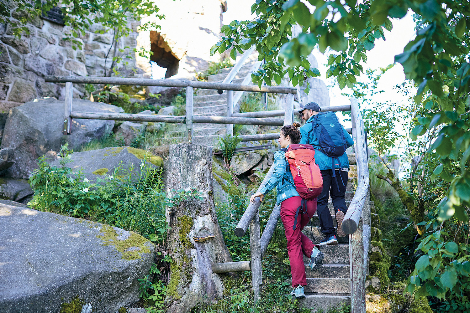 Auf Stiegen und Stufen, Wurzelpfaden und Wiesenwegen führt diese rund 18,5 Kilometer lange Tour durch pittoreske Felsenlabyrinthe und die wilden Weiten des Fichtelgebirg’schen Backcountry.