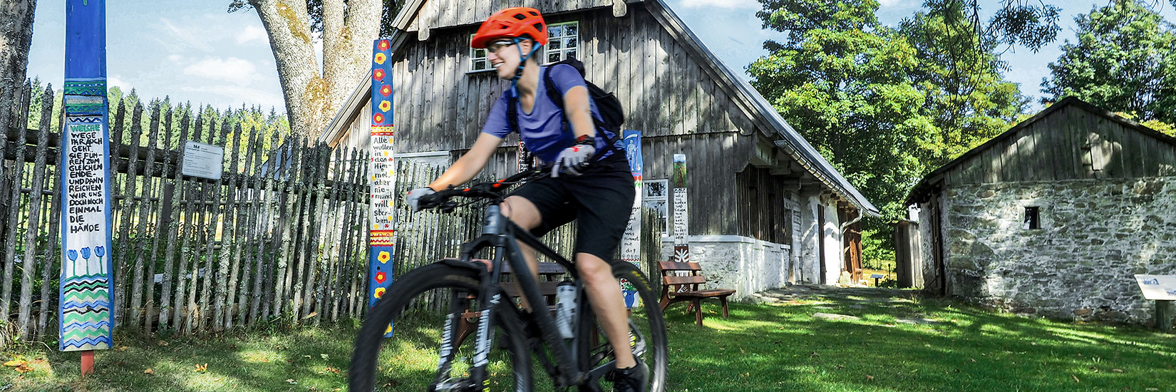 Los geht es in Bischofsgrün am Fuß des Ochsenkopfes. An Freilandmuseum Grassemann und Naturmoorbad Fleckl vorbei, rollen wir hinab ins Löchleinstal und auf den Spuren längst vergangener Bergwerkstage.