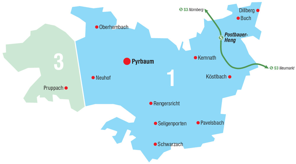 Bitte beachten Sie, dass eine Bedienung der Ortsteile Postbauer und Heng sowie Fahrten zwischen den Ortsteilen nicht möglich sind.