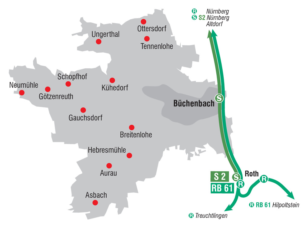 Das Anrufsammeltaxi (AST) bedient alle Haltestellen in der Gemeinde Büchenbach. Das AST holt Sie vom Bahnhof oder der vereinbarten Haltestelle ab und fährt Sie am Zielort bis vor die Haustür.