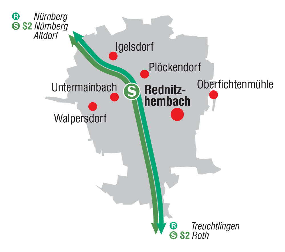 Der On-Demand-Verkehr bringt Sie innerhalb der Gemeinde Rednitzhembach zu Ihrem Zielort. Der Ein- und Ausstieg ist an jeder Haltestelle innerhalb der Gemeinde möglich.