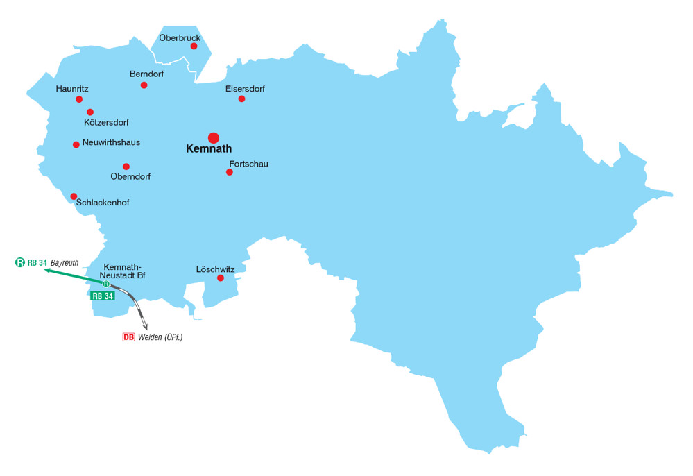 Das KEMBAXI bedient die Haltestellen in den in der Karte gekennzeichneten Ortsteilen der Stadt Kemnath. Das BAXI holt Sie von der vereinbarten Haltestelle ab und fährt Sie am Zielort bis vor die Haustür.