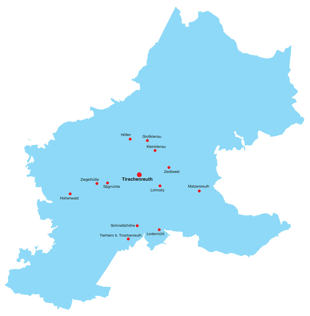 Das Tursolino BAXI bedient die Haltestellen in den in der Karte gekennzeichneten Ortsteilen der Stadt Tirschenreuth. Das BAXI holt Sie von der vereinbarten Haltestelle ab und fährt Sie am Zielort bis vor die Haustür.