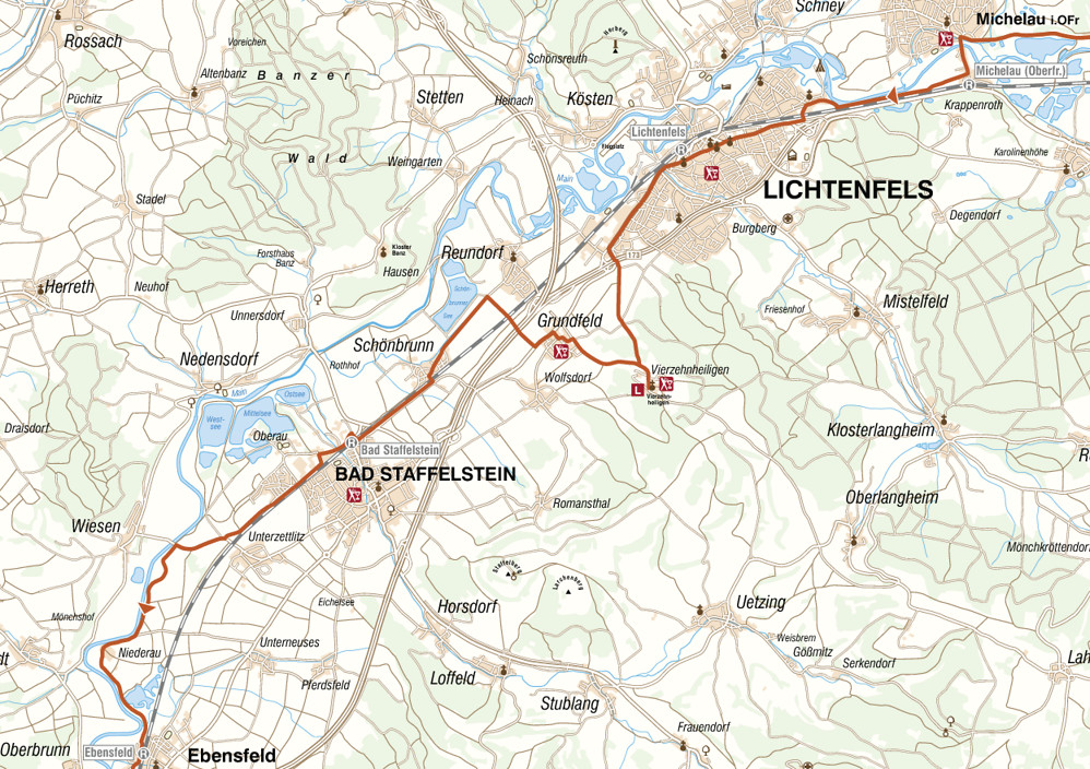 Neben Straße und Bahn nach Bad Staffelstein (km 27)