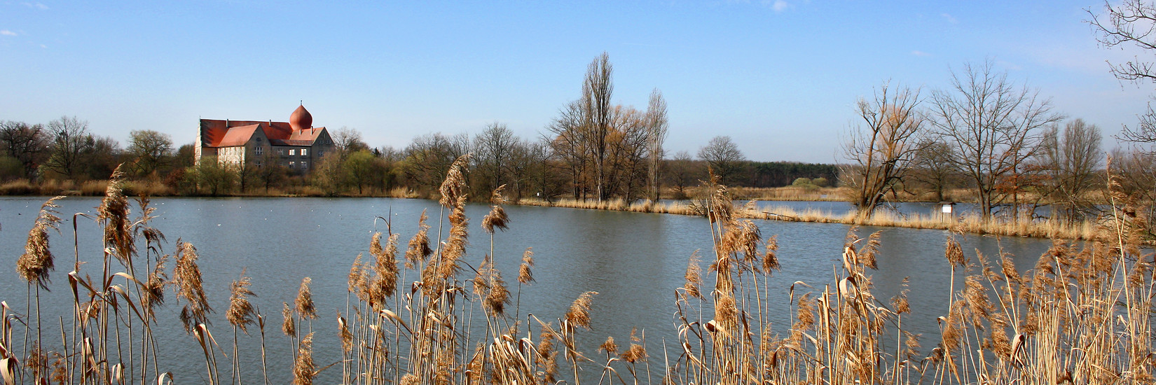 Wolkengebilde, die sich in Weihern spiegeln, raschelndes Schilf und Vogelschrei – wir umrunden das Naturschutzgebiet Mohrhof und können das Wasserschloss Neuhaus besuchen. Entfernungen: Rundweg Buch – Buch ca. 17 km, bei Start und Ziel in Gremsdorf + 2 km, der Rundweg Neuhaus + 5 km.