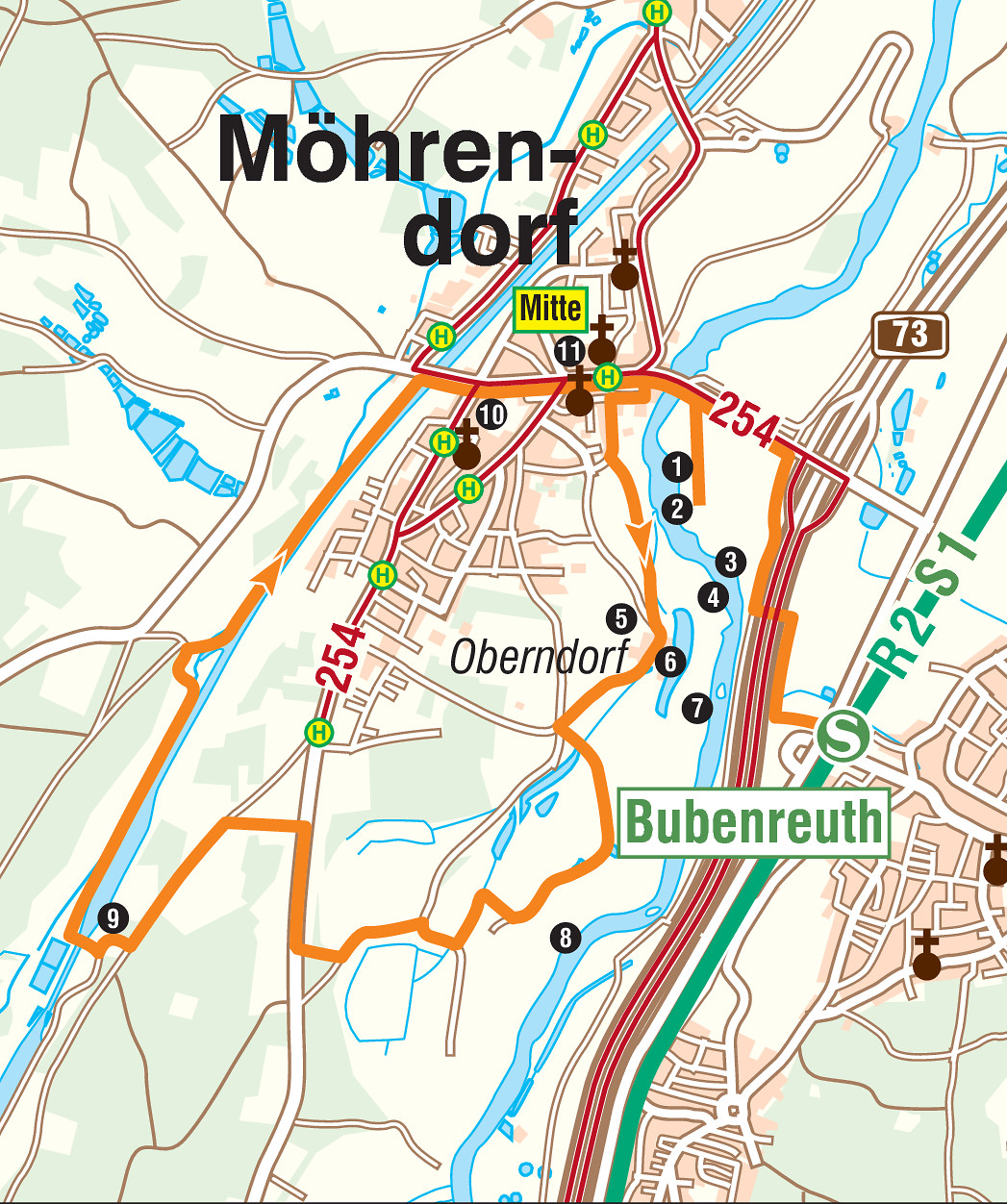 Wir starten entweder in Möhrendorf an der Haltestelle Mitte oder in Bubenreuth am Bahnhof.