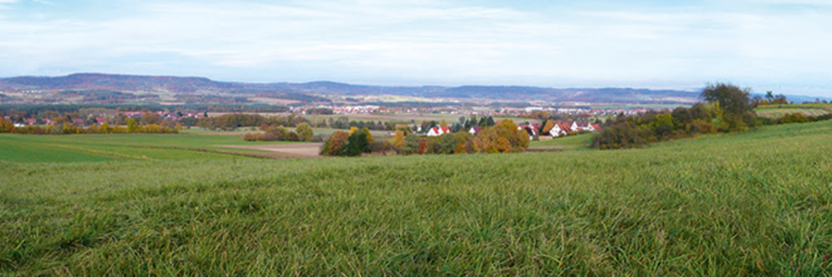 Am Bahnübergang folgen wir dem Gräfenbergbahn-Zeichen etwa 200 m aufwärts, dann links auf den Fußweg. Wieder auf der Straße kurz links, dann rechts und weiter aufwärts. In der Ortsmitte oben biegen wir rechts ab Richtung Käswasser. Am Ortsende von Großgeschaidt auf den Fußweg, ca. 300 m weit. Bei den Strommasten rechts auf den Feldweg schwenken. Den abwärts – vor uns der Hetzles, rechts weiter der Albrand. Links zieht die Skyline von Erlangen auf.