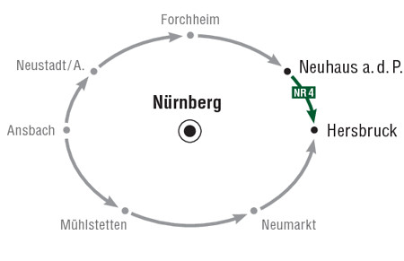 Los geht es am Bahnhof Neuhaus a. d. Pegnitz – von Nürnberg aus in nur 28 Minuten mit dem Regionalverkehr erreichbar.