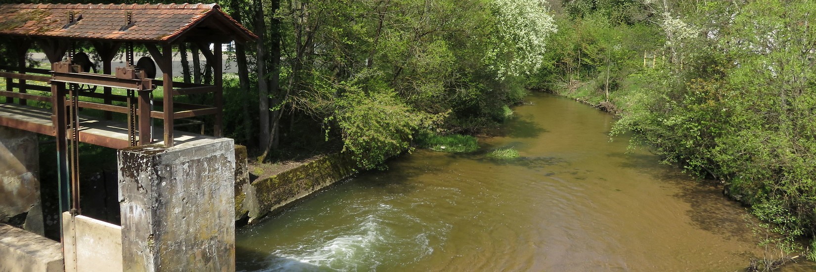 Auf unserem bisherigen Weg haben wir die Schwarzach als ruhig dahinfließendes Gewässer im Wiesengrund kennengelernt. Das wird sich nun bald ändern ...