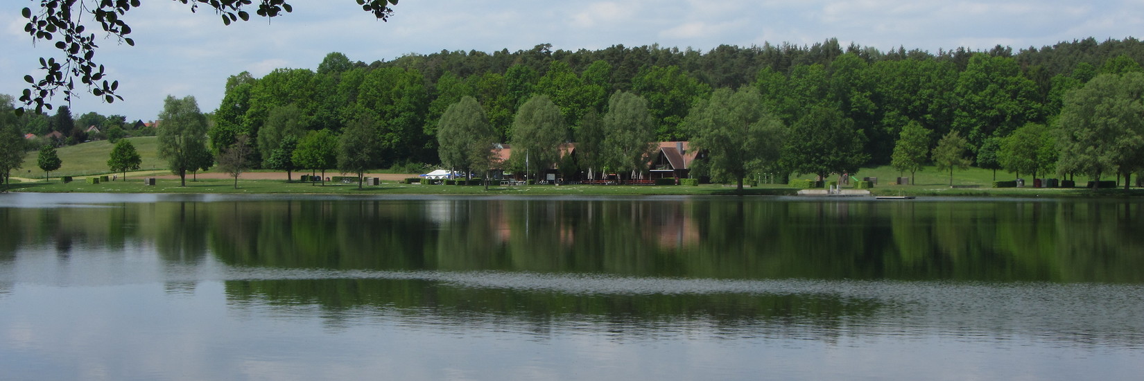 Am Seeende nach einem Waldstück dann der Schwenk nach Süden und mit schönem Ausblick auf das Vogelschutzgebiet auf dem Damm in Richtung Seezentrum Heuberg. Hier „Oasenschwemme“: Sandstrand zum Baden, Cafeteria mit Einkehrmöglichkeit, ein großer Spielplatz mit abwechslungsreichen Geräten – und vor allem die Umweltstation mit vielen Unterhaltungs- und Lernangeboten (unter anderem ein Wasserspielplatz). Diese sind leider nur während der Öffnungszeiten zugänglich.