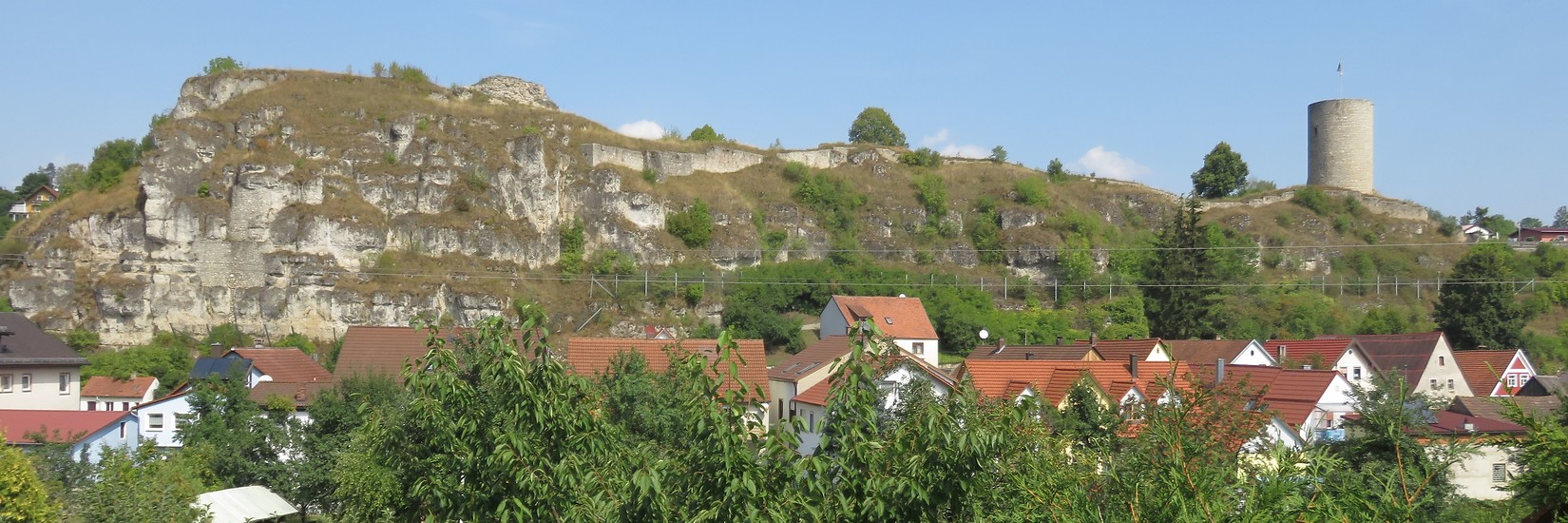 Hohenfels begrüßt uns schon von weitem durch seinen markanten Bergfried der ehemaligen Burganlage. In einer großen Schleife umfahren wir den Schlossberg. Direkt neben der Kirche sprudelt die eingefasste Quelle des Forellenbaches. Dieser begleitet unseren weiteren Weg aus dem Ort hinaus bis nach Rohrbach (Markierung beachten!).