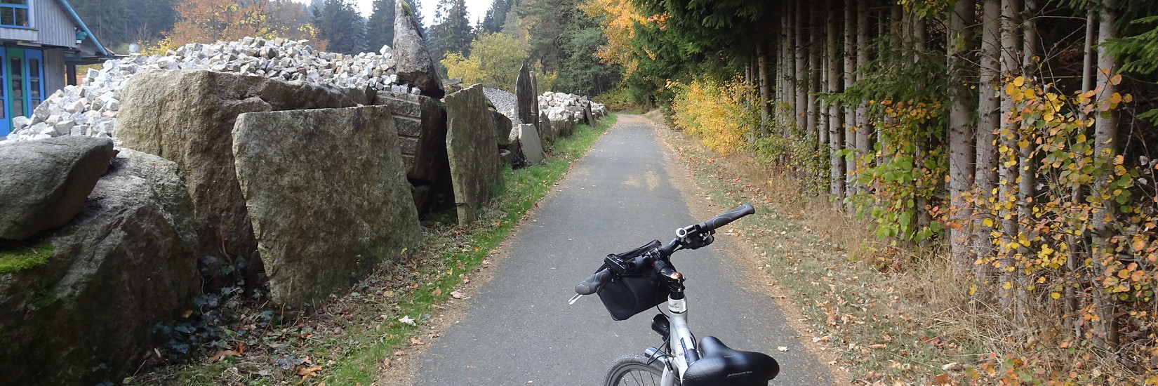 Schön auf geteertem Untergrund geht’s flott dahin. Erstaunlich: Hier waren für die Züge und Schienenbusse früher sogar steilere Stücke als auf der bekannten „Schiefen Ebene“ bei Neuenmarkt-Wirsberg zu überwinden!
