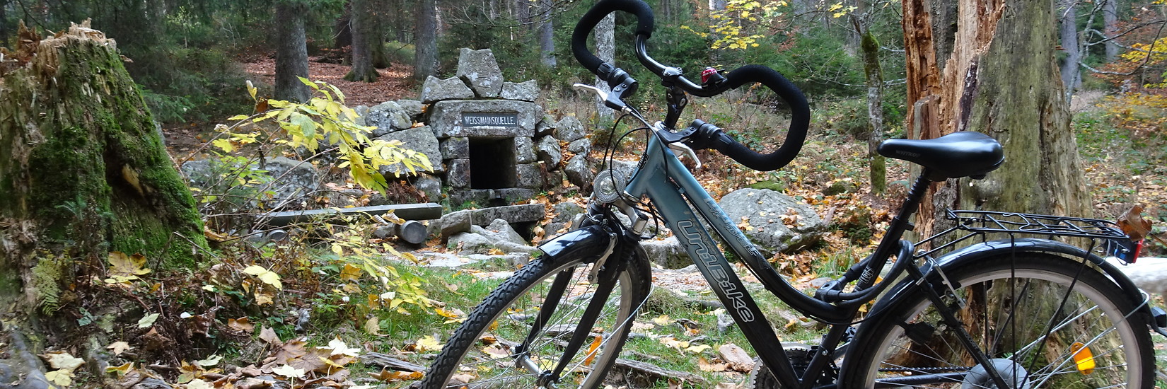 Wir kommen wieder an den „5-Wege-Stern“ zurück und besuchen auf dieser 8,8 km langen Schleife gleich drei namhafte Quellen und noch dazu den Geldbrunnen und das Glasmacherdenkmal. Außerdem haben wir hier die Option, ganz auf den Ochsenkopf hinaufzuradeln! Am „5-Wege-Stern“ nicht geradeaus, sondern halbrechts den Berg hoch (= 3. Weg von links). Zur Orientierung: Zu Beginn des Weges ist auch unten links die „Station 4 – Weg der Dichter und Komponisten“.