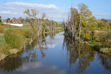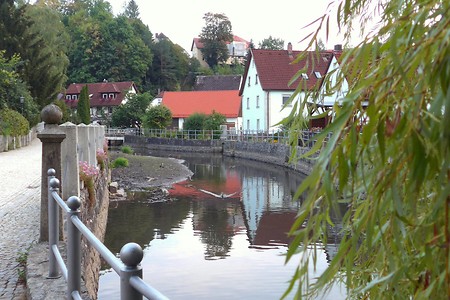 Schnell erreicht per Bahn ist Kirchenlaibach. Schöne Hügellandschaft, das malerische Weidenberg mit seinen Treppchen und Gässchen wären schon Programm genug, aber dann folgt noch überraschend dynamisches Auf und Ab auf bestem verkehrsfreien Radweg bis Friedrichsthal und schließlich ein verdienter erholsamer Abschluss durch die schönen Wilhelminenauen am reich mäandrierenden Roten Main in Bayreuth …