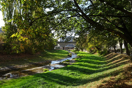 „Am Buchert“ geht’s an der Steinach entlang weiter, wir kommen zu den urig aussehenden historischen Felsenkellern.