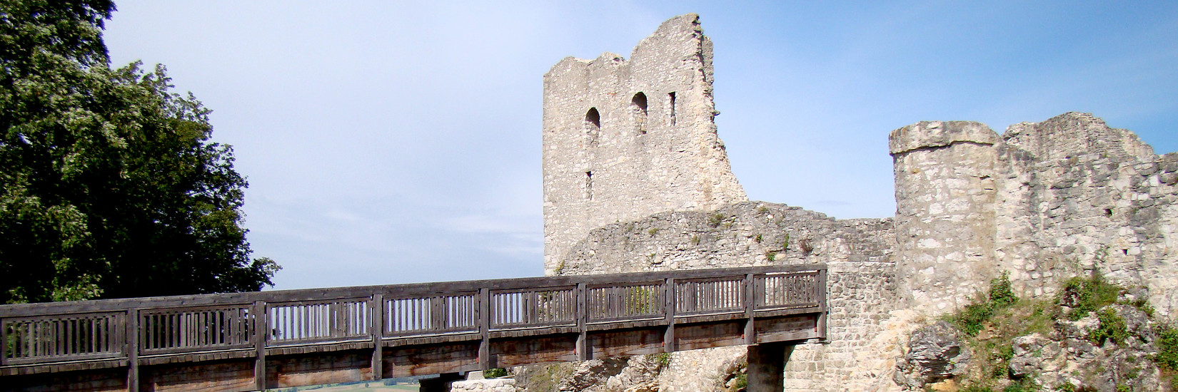 Hier zeigt sich schon unser nächstes Ziel, die Burgruine Wolfstein. Kurz den Radweg bergab und rechts aufwärts die Straße nach Wolfstein (km 29).