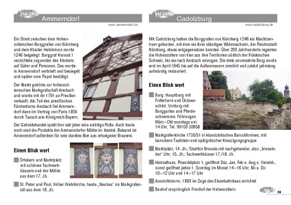 Besonders geprägt wurde die Region von den Hohenzollern, die im Franken des 12. Jh. zunächst als Burggrafen von Nürnberg Fuß fassten. Als sie Mitte des 13. Jh. in den Besitz von Cadolzburg gelangten, hatten sie ihre künftige Machtbasis gefunden. Kluge Königstreue, ein Händchen für Hausmachtpolitik und einiges Geschick beim Erwerb von Territorien konsolidierten den Aufstieg in den begehrten Reichsfürstenstand. Gegen die Reichsstadt Nürnberg konnten sie aber nie so recht an. Die zerschnitt ihr Land „ob dem Gebirg“ und „unter dem Gebirg“ auf breitem Streifen und ließ sie auch später in den beiden Markgrafenkriegen nicht gut aussehen. Dafür wurde Cadolzburg zum mittelalterlichen Zollernzentrum im untergebirgischen, also südlich der Fränkischen Schweiz gelegenen Franken.