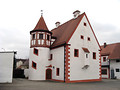 In den Ort hinein und der Vorfahrtstraße nach. Am Ortsanfang rechts liegt die Burg. Am Marktplatz treffen wir auf etliche sehr ansehnliche Häuser, das Rathaus und den Turm. Der reguläre Vilstalradweg würde uns nun geradeaus durch das Tor auf die Straße nach Schlicht schicken. Wir aber wählen den neuen, direkt neben der Vils angelegten Fuß-/Radweg.