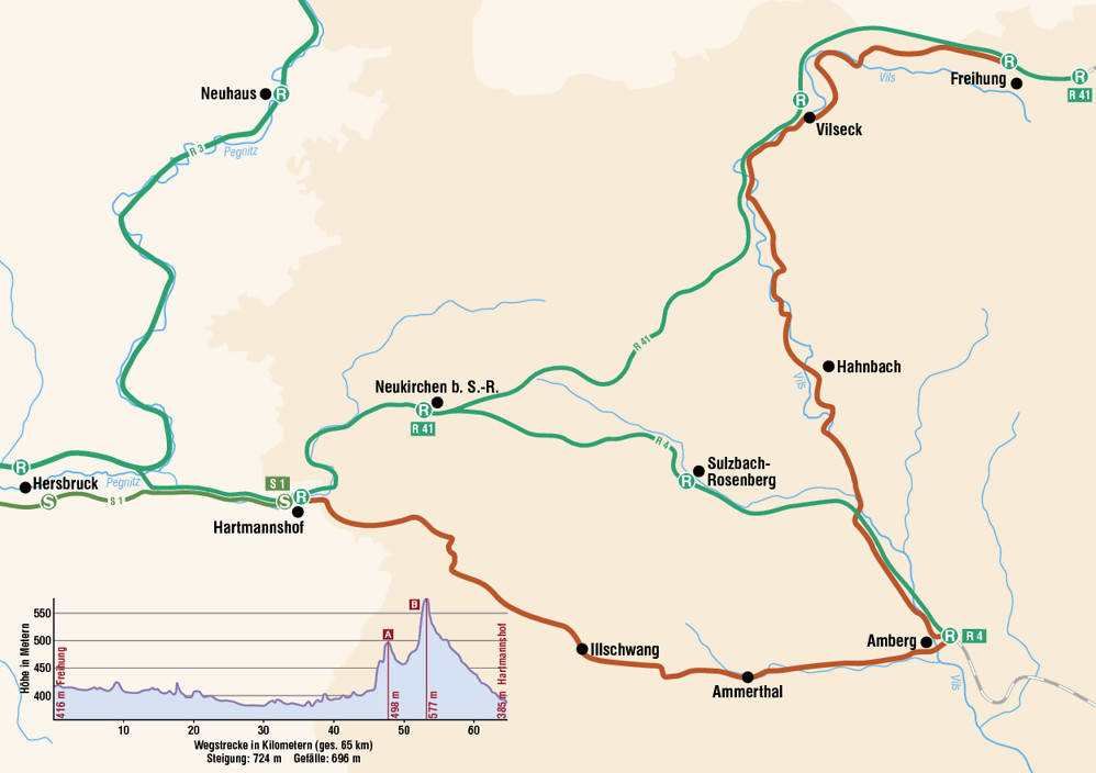 Markiert ist von Freihung bis Amberg mit dem Vilstalradweg