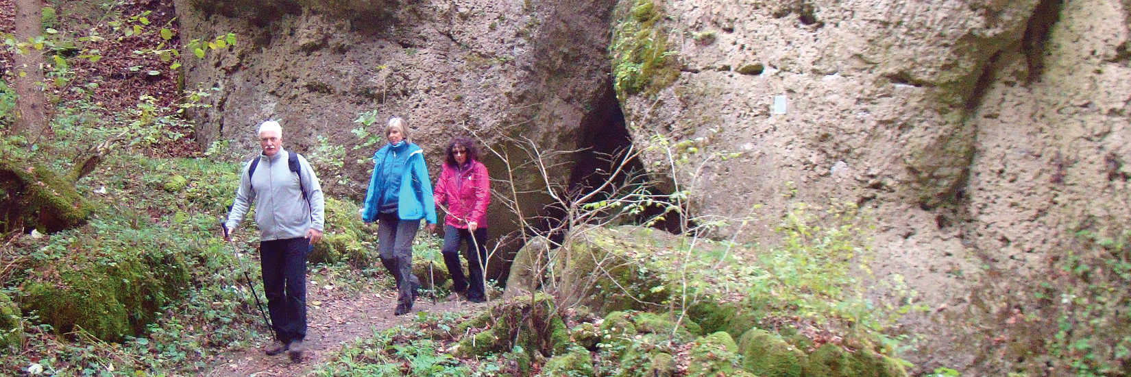 Nur kurz am Bach entlang, der Weg steigt an, führt an einem Kletterfelsen vorbei und hinter einem Durchlass weiter nach oben. Ca. 200 m nach dem Felsentor ist vor allem im Herbst wegen des Laubbefalls Aufmerksamkeit geboten, denn das
