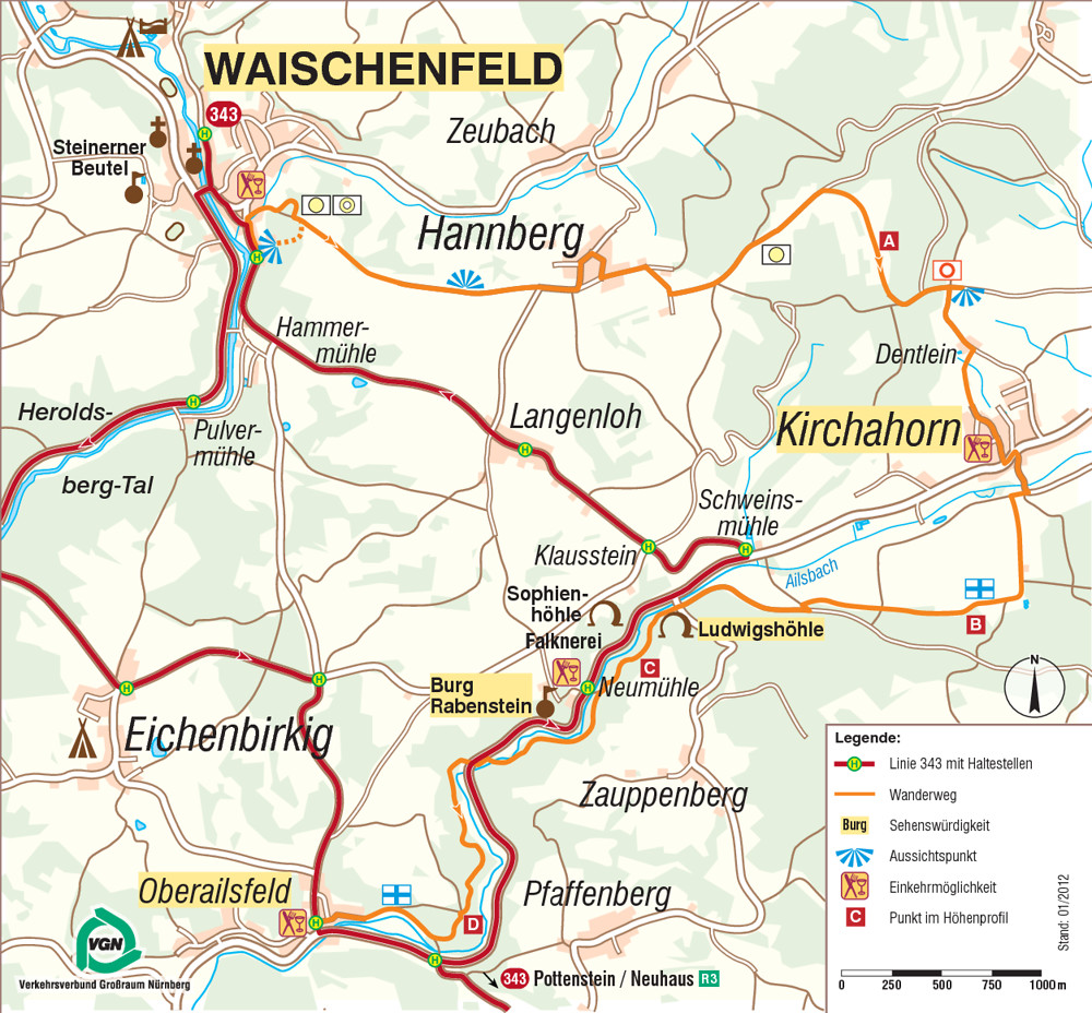Herrliche Weitblicke wechseln sich mit imposanten Felsformationen ab und verleihen dieser Tour in der Fränkischen Schweiz die Note „besonders wertvoll“. In kurzen Abständen verändert sich das Landschaftsbild und begeistert den Wanderer auf Schritt und Tritt. Bei genauem Studieren des Fahrplans lässt sich die Wanderung auch Montag bis Freitag mit der Buslinie 396 – dann allerdings ab Bayreuth bis/ab Kirchahorn – in zwei Etappen aufteilen.