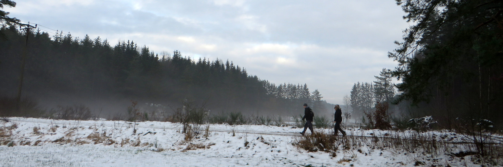 Danach queren wir den Auslauf, halten uns ein Stück am Waldrand entlang und erreichen danach einen Abzweig. Nach links ist unser Weg, ab sofort ohne die vertraut gewordene