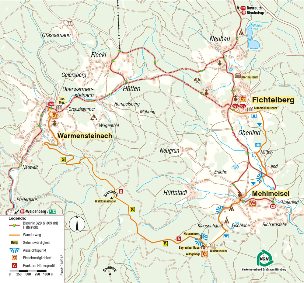 Vom Busbahnhof in Fichtelberg 329, 369 aus starten wir unsere Wanderung direkt vor den beiden höchsten Bergen Nordbayerns, Schneeberg und Ochsenkopf.