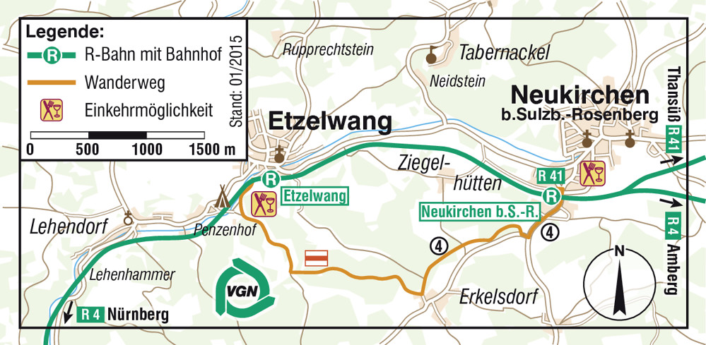Vom Bahnhof Neukirchen (b. S.-R.) aus starten wir zu unserer Tour in Richtung Etzelwang. Mit der örtlichen Markierung