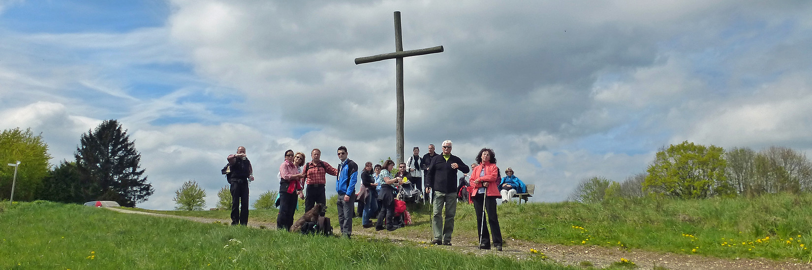 ist die 1,8 km hinunter nach Pommer unser Wegezeichen. Neben dem Holzkreuz kann man – wer will – von der Rastbank aus, aber auch später auf dem anschließenden Panoramaweg, die weit reichende Aussicht genießen.