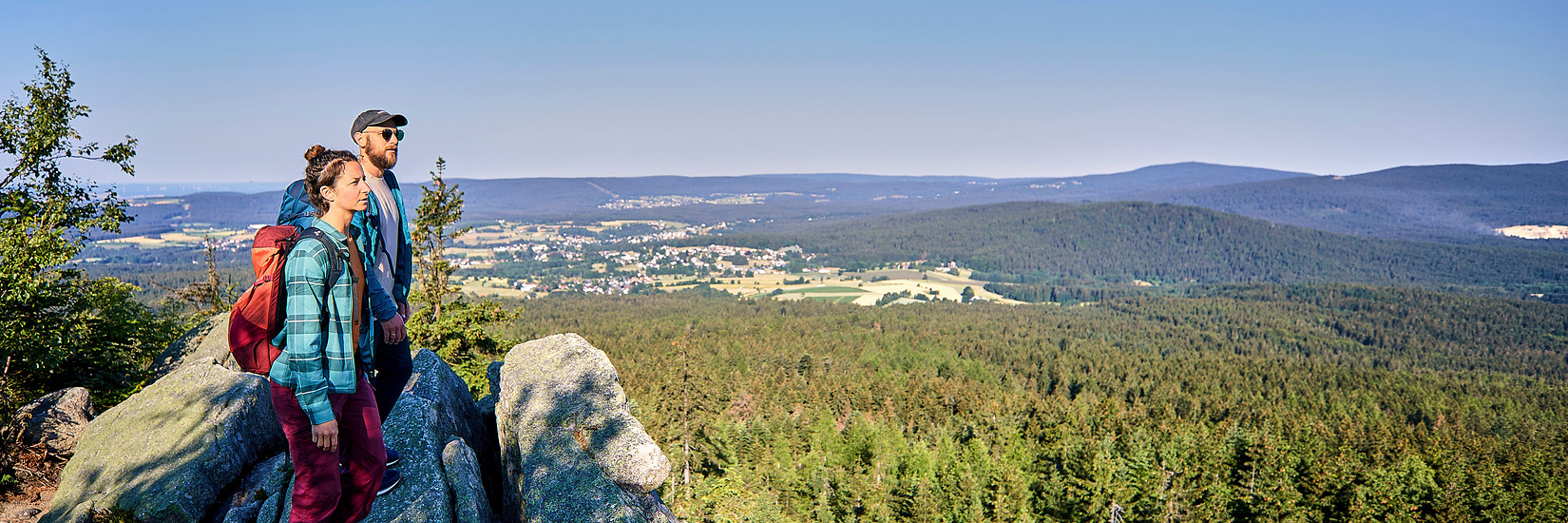 nach zum Kaiser-Wilhelm-Felsen samt Panoramaplattform – mit Ausblicken über Wunsiedel bis zum Schneeberg mit dem charakteristischen Fernmeldeturm.