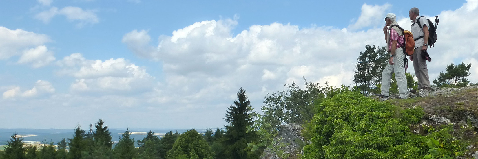 Zunächst bleiben wir den vertrauten Wanderzeichen treu, halten uns geradeaus und immer noch ansteigend bis zur nächsten Abbiegung. Links führt ein schöner Pfad zur 577 m hohen Hohen Metze, einem Landschaftsschutzgebiet auf einer Hochebene, die nach Westen steil abbricht (km 6,5).