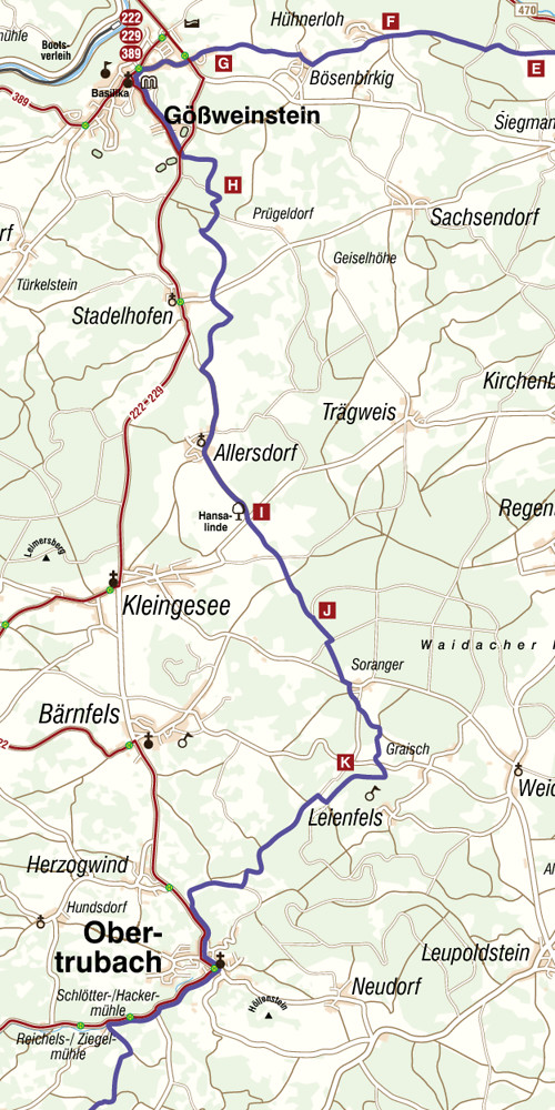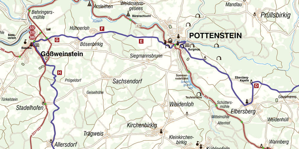 oder Ebermannstadt RB 22. Rückreis ab Gößweinstein ebenfalls mit Linie 389 in umgekehrter Richtungen zu den Bahnhöfen.