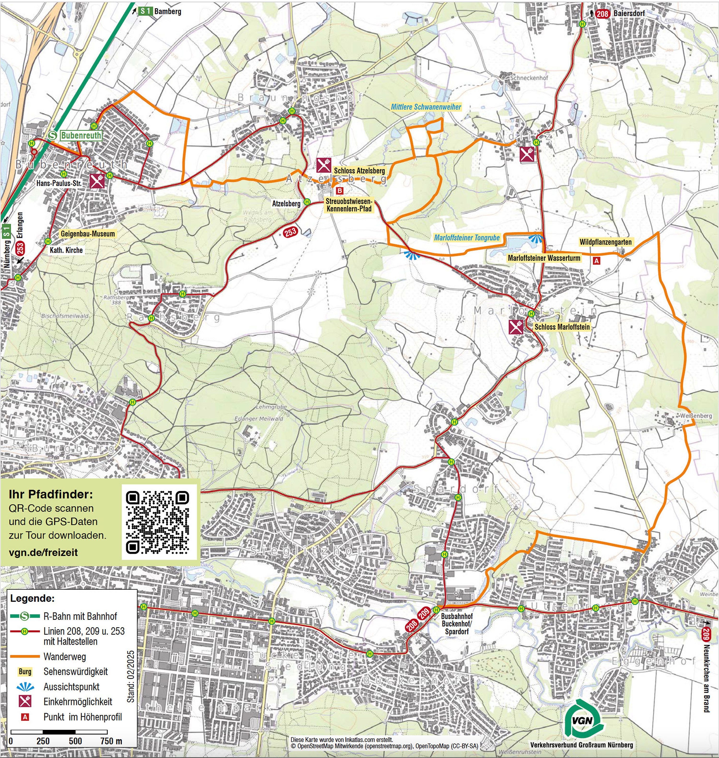 1 bringt dich von dort zum Beispiel alle 20-30 Minuten zurück nach Erlangen. Auch die Buslinie
