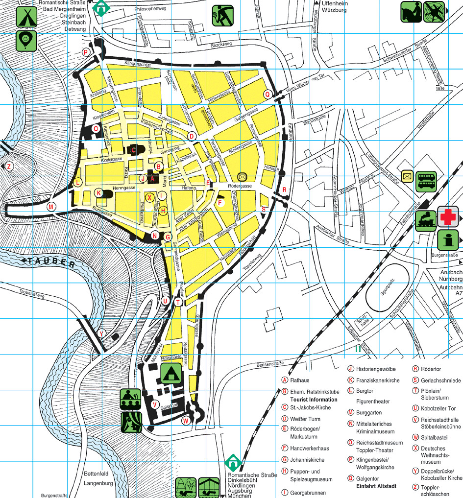 Der Weg zum Bahnhof führt hier unterhalb des Marktplatzes über die Hafengasse (Markusturm und Röderbögen), weiter in der Rödergasse durch das Rödertor hinaus aus dem Stadtkern. Die Ansbacher Straße mündet letztlich in der Bahnhofstraße, in der es nach links zum Bahnhof RB 82geht.