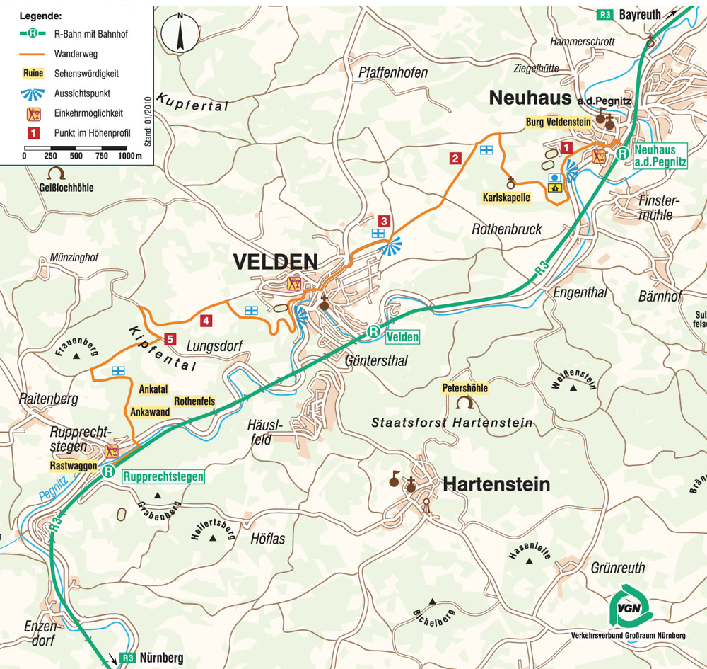 führen nach Lungsdorf und von dort die Pegnitz entlang direkt im Tal nach Rupprechtstegen.
