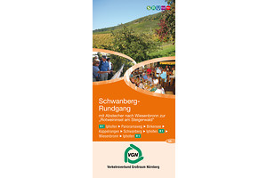 Nun weiter nach rechts, es folgt nach 600 m ein Abzweig, bei dem es zu entscheiden gilt, ob wir die Wanderung über (d. h. 120 m hochsteigen) oder um den Schwanberg fortsetzen wollen. Die zwar etwas längere, aber weniger anstrengende Variante (noch 6,7 km) ist empfehlenswerter.