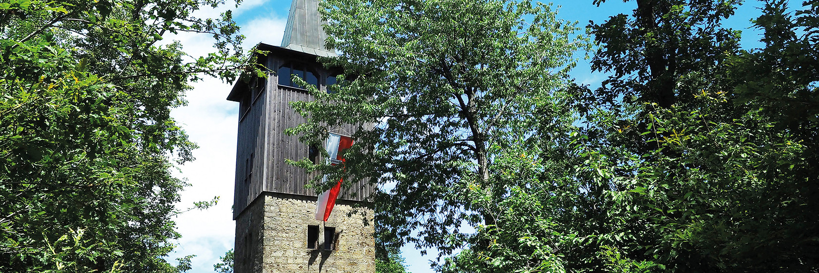 verlässt du den Ort und wanderst am idyllisch gelegenen Wolfsee vorbei und entlang uralter Hutewälder zum Aussichtsturm