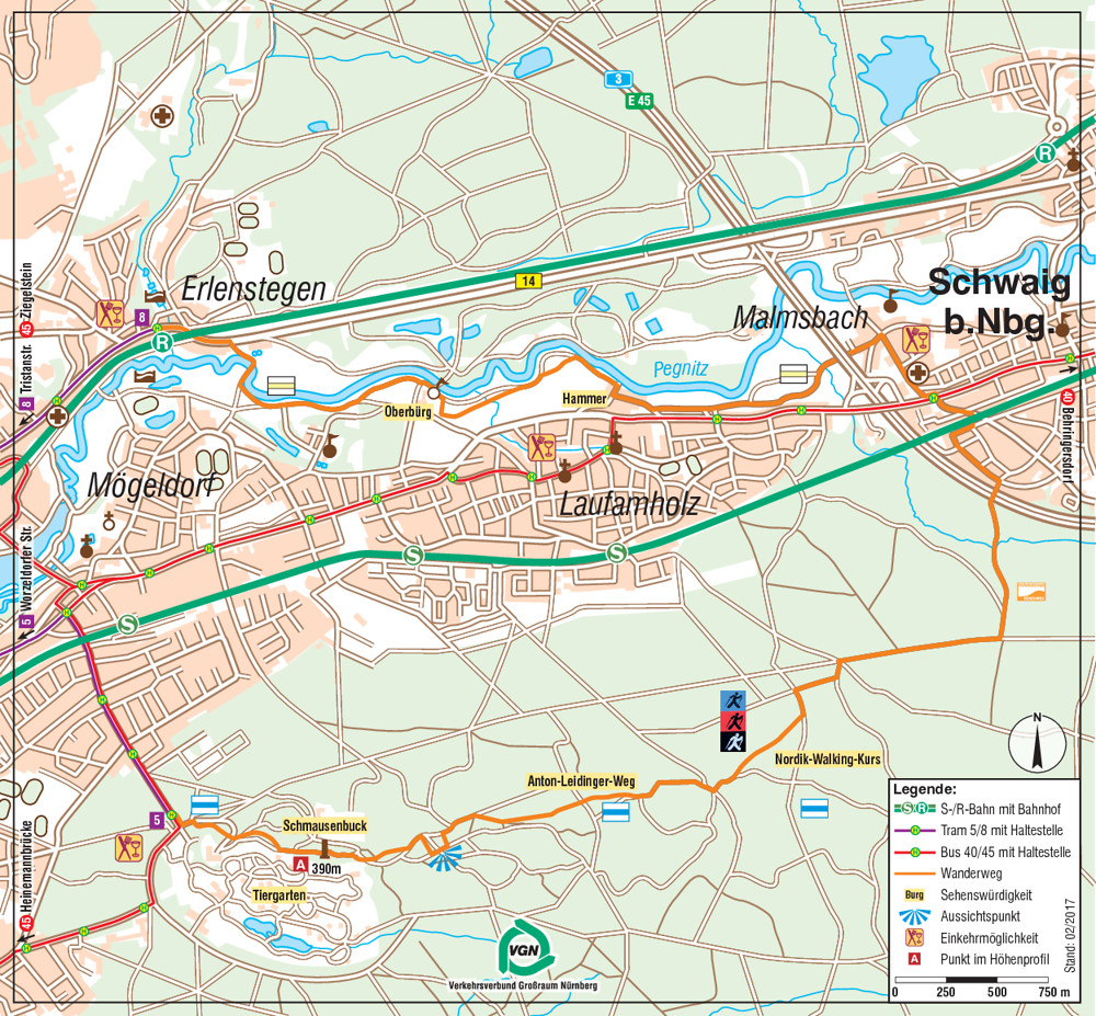 als Anhaltspunkt. Am Ende der Hammerstraße erreichen wir nach der Unterführung der A 3 das beliebte Naherholungsgebiet Pegnitztal Ost.